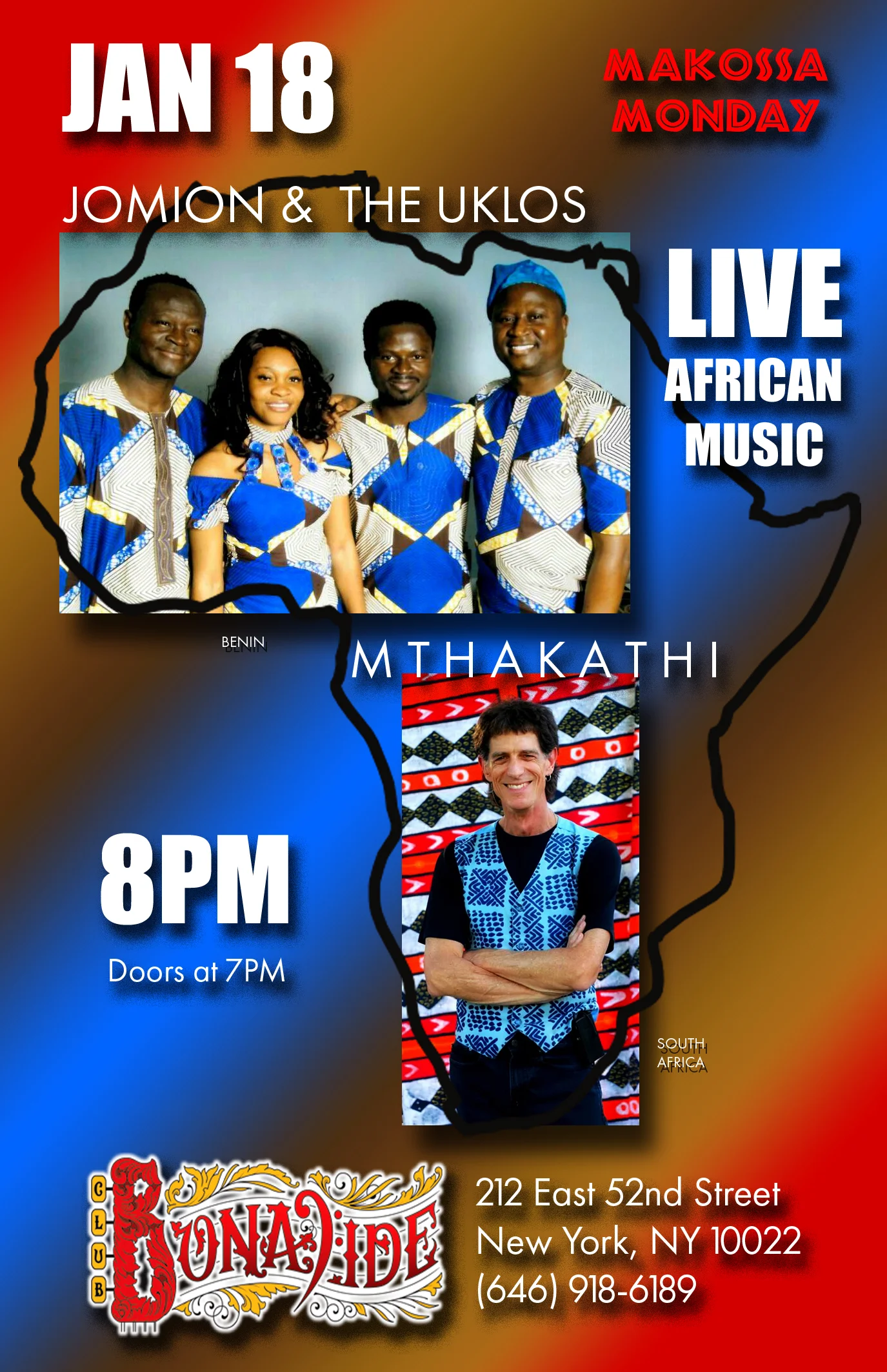 Mthakathi joins Benin's Jomion & The Uklos as a special guest perfomer for Makossa Monday at Richard Bona's new premier music venue.